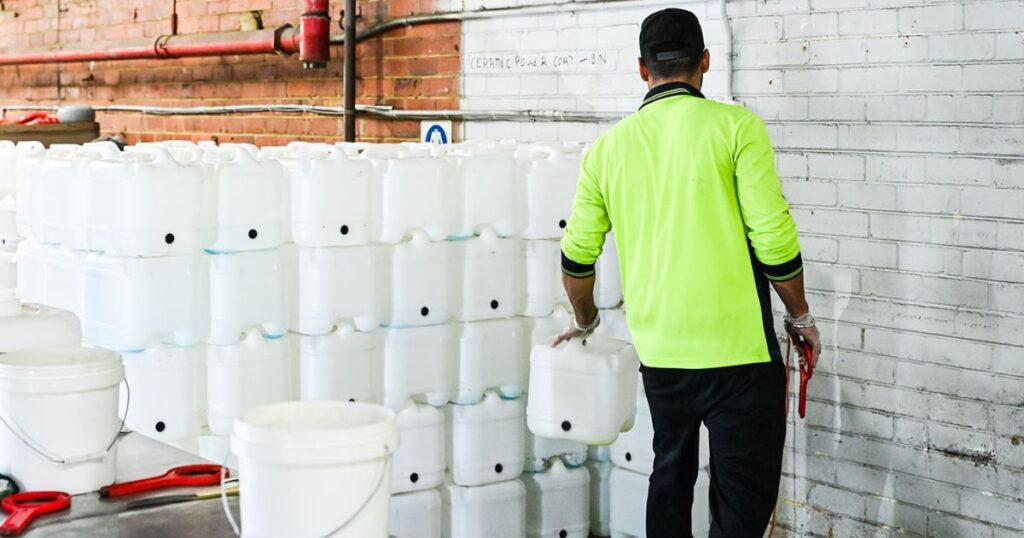 We collect empty 15L drums during deliveries and return them to our Melbourne facility. Each drum undergoes a rigorous inspection process to ensure it meets our strict quality and safety standards. Only drums that pass these checks are cleaned and prepared for reuse in manufacturing. This ensures product integrity and customer safety. Drums that show signs of wear, damage, or have exceeded their reuse limit are responsibly recycled into new products, helping extend the lifecycle of raw materials and reduce landfill waste.