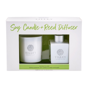 Holiday scent with rich coconut and cool lime. Includes candle and reed diffuser.