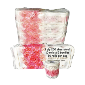 These 3 ply toilet paper offers both softness and strength, with 250 sheets per roll and 50 rolls individually packed in each bag.