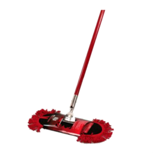 The Redback Earthmover Dust Mop features a fringe design and a heavy-duty handle, making it ideal for dusting a variety of floor surfaces.