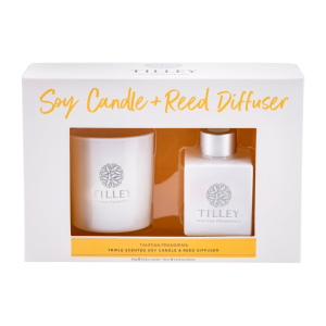Rich floral fragrance evokes Tahitian relaxation. Includes candle and reed diffuser.