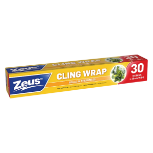 Cover leftovers with Zeus Cling Wrap to seal in freshness. 30m x 30cm