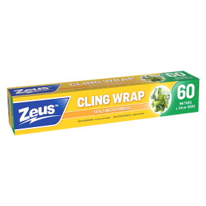 Cover leftovers with Zeus Cling Wrap to seal in freshness. 60m x 30cm