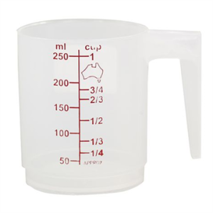 A durable and precise 250ml measuring cup, made from BPA-free plastic, perfect for all your kitchen measuring needs.