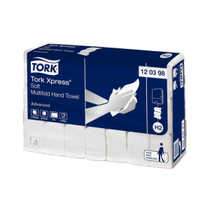 The Tork H2 Hand Towel Range includes compact & interfolded hand towels designed for medium-traffic washrooms. It features towels that dispense one at a time to enhance hygiene and reduce waste.