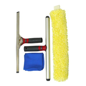 A complete kit for efficient and effective cleaning of windows and glass surfaces.