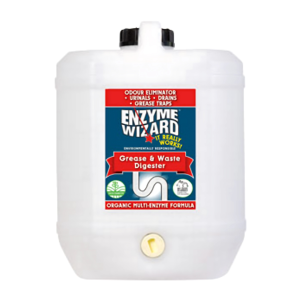 Enzyme Wizard is a natural, single-dose solution that breaks down grease and waste, clears and deodorizes problem drains, and improves grease trap efficiency.