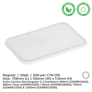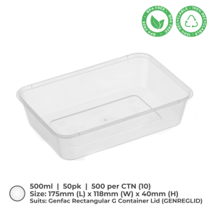 Rectangular G Containers (500ml) are ideal for food storage and a various other purposes. These microwave-save containers, made from recyclable, BPA-free, polypropylene plastic, are available in cartons of 500.
