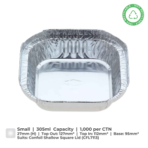Made from quality foil, Confil wrinklewall trays are 100% recyclable and endlessly renewable. Versatile, 305ml capacity, suits CFL7113 lid.