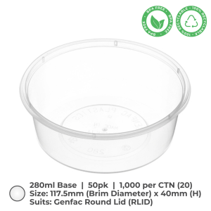 Round Container (280ml) are ideal for food storage and a various other purposes. These microwave-save containers, made from recyclable BPA-free, clear polypropylene plastic, are available in cartons of 1,000.