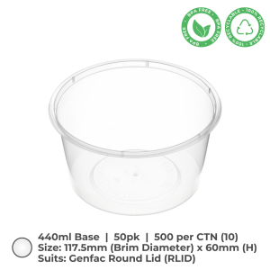 Round Container (440ml) are ideal for food storage and a various other purposes. These microwave-save containers, made from recyclable BPA-free, clear polypropylene plastic, are available in cartons of 500.