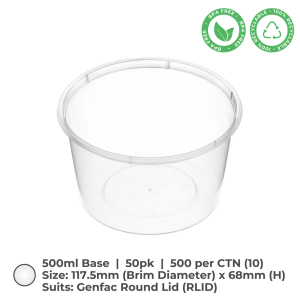 Round Container (500ml) are ideal for food storage and a various other purposes. These microwave-save containers, made from recyclable BPA-free, clear polypropylene plastic, are available in cartons of 500.