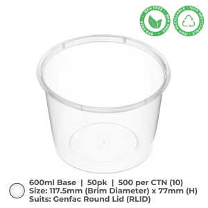 Round Container (600ml) are ideal for food storage and a various other purposes. These microwave-save containers, made from recyclable BPA-free, clear polypropylene plastic, are available in cartons of 500.