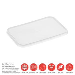 Rectangular Container lids are ideal for food storage and a various other purposes. These freezer grade, microwave-save lids, made from recyclable, BPA-free, polypropylene plastic, are available in cartons of 500.