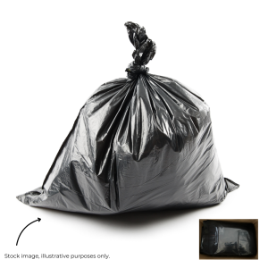 Heavy duty, black garbage bags with 140L capacity are flat packed in a carton of 200 bags for practical, single dispensing.