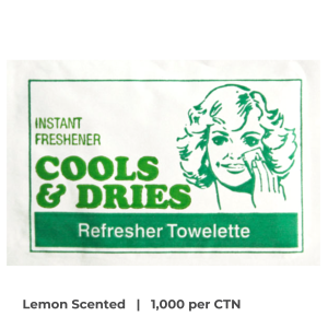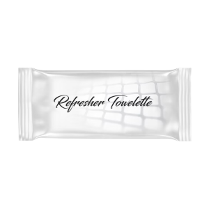 Refresher towelettes packaged into a single use wet paper towelette, for on the go use. Ideal for a quick freshen up after eating, working, travelling and more. 160 x 140mm.