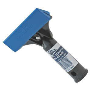 Plastic scraper with replaceable, double-sided blade. Complete with safety cover for added protection, this plastic scraper fits most extension poles.