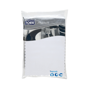 Tork White Traymats are disposable, hygienic mats designed to provide a clean and protective surface for trays in foodservice settings.