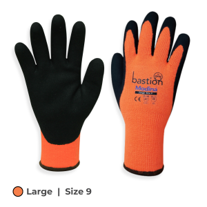 Acrylic thermal gloves with a 10G high-visibility knitted shell for cold resistance to –30ºC. Featuring cut level 3 protection, sandy latex coating for dexterity, oil resistance and elastic knitted cuffs.