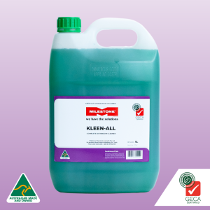 KLEEN-ALL Complete Bathroom Cleaner quickly and easily removes body oils, soap scum, grime, and unwanted surface buildup from all washable areas. GECA Certified Product.