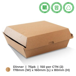 Suitable for both hot and cold foods, this Burger Box is made from natural corrugated, 100% recyclable cardboard. Versatile, ideal for burgers, snacks, chips. Home & Industrial Compostable.