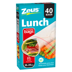 BPA free, Zeus Resealable Snack Bags feature a press lock to keep your food fresh. Each pack contains 50 bags (16x8cm)